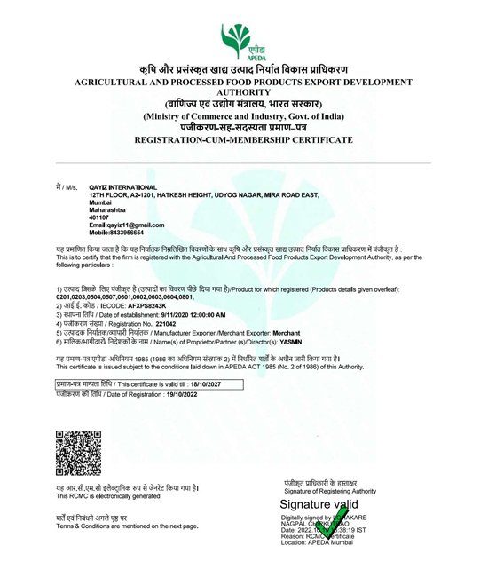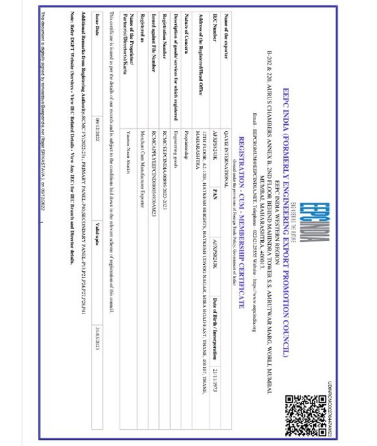 Qayiz International holds the necessary licenses and certifications to operate as a legitimate and compliant merchant exporter.